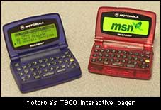 “Talkabout T900”是摩托羅拉公司為微軟MSN專門設(shè)計(jì)生產(chǎn)的一種雙向?qū)ず魴C(jī),它由一個(gè)緊湊型的小鍵盤(pán)和一個(gè)可以容納4行消息的屏幕組成,設(shè)計(jì)小巧,攜帶方便,可以方便用戶收發(fā)MSN提供的Hotmail免費(fèi)郵件服務(wù)、接收短消息以及訪問(wèn)MSN上的其它服務(wù),比如及時(shí)的股市行情、警示消息等等。