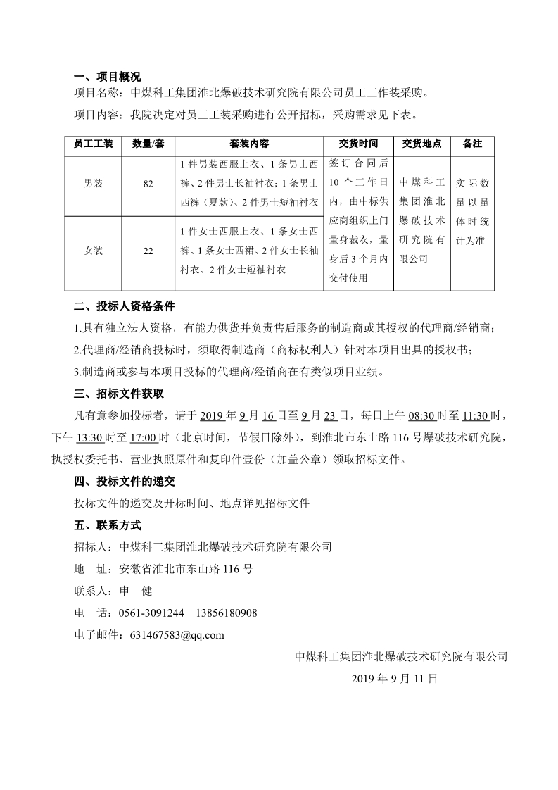 員工工裝采購(gòu)招標(biāo)公告