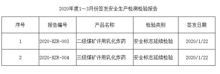 安全生產檢測檢驗報告信息(2020年度1~3月份)