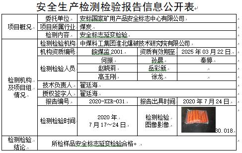 安全生產(chǎn)檢測(cè)檢驗(yàn)報(bào)告信息公開(kāi)表(2020年7月)