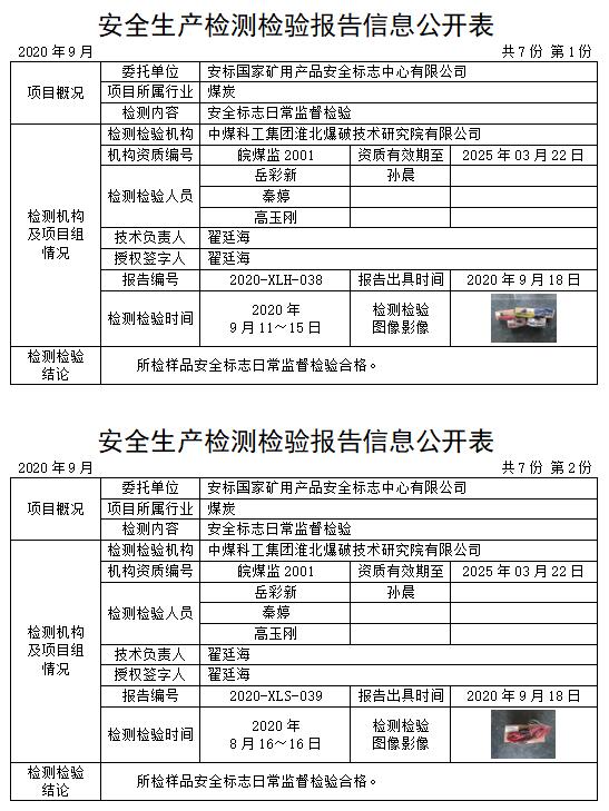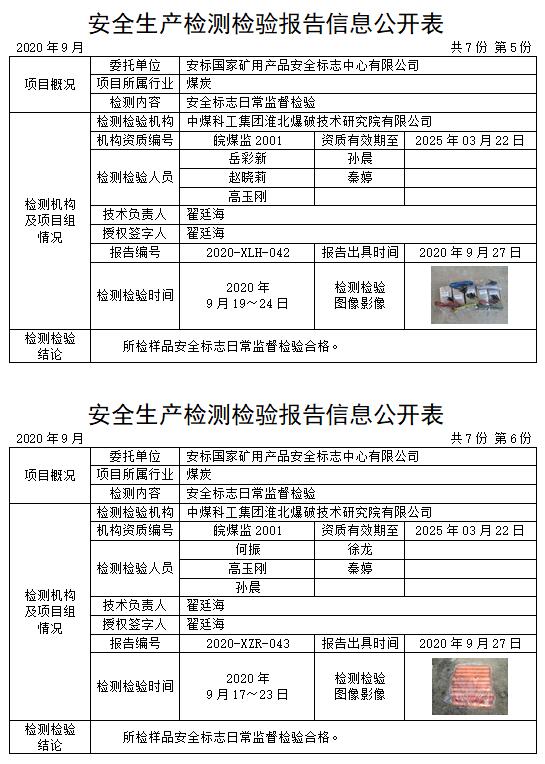 安全生產(chǎn)檢測(cè)檢驗(yàn)報(bào)告信息公開表(2020年9月)