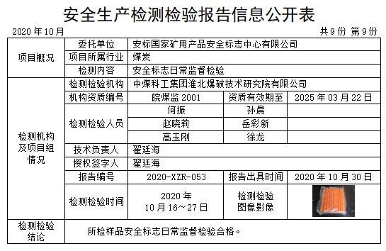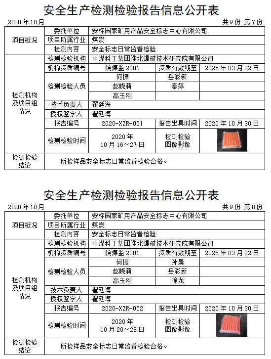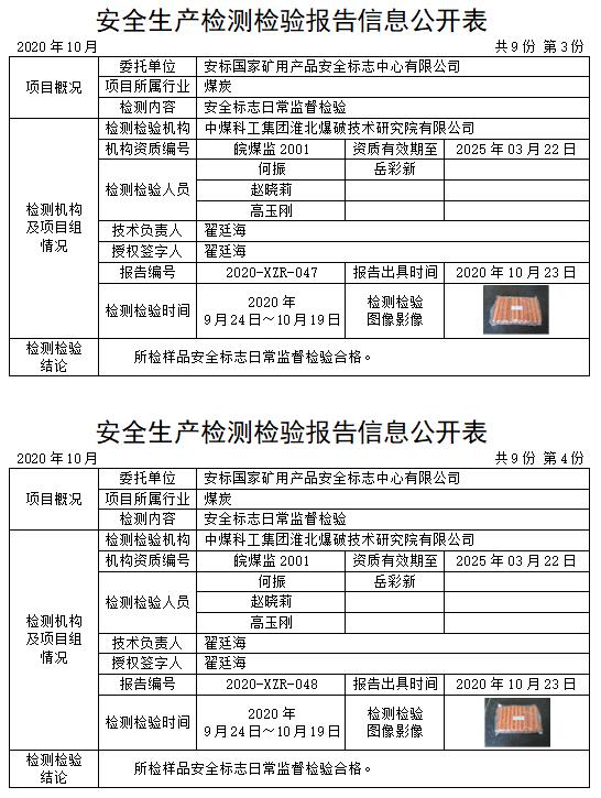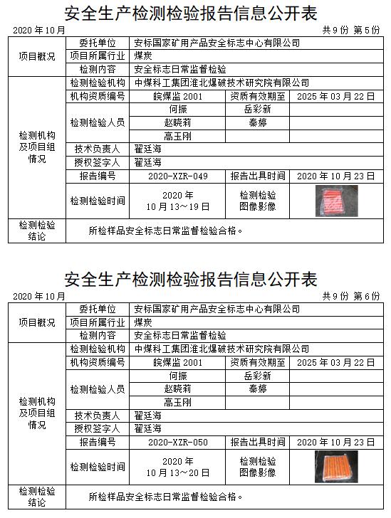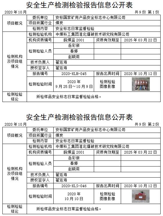 安全生產(chǎn)檢測(cè)檢驗(yàn)報(bào)告信息公開表(2020年10月)