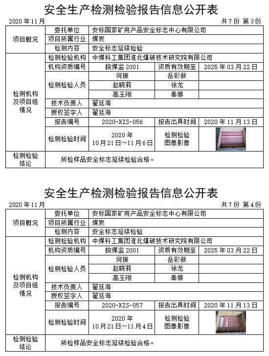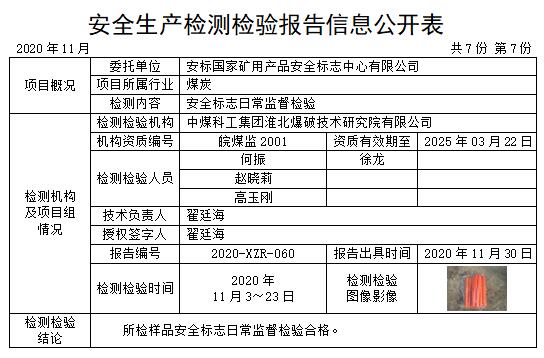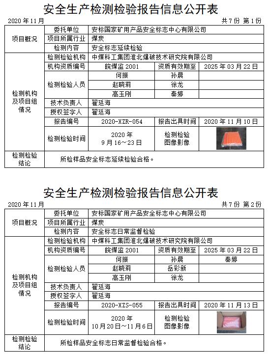 安全生產(chǎn)檢測(cè)檢驗(yàn)報(bào)告信息公開(kāi)表(2020年11月)