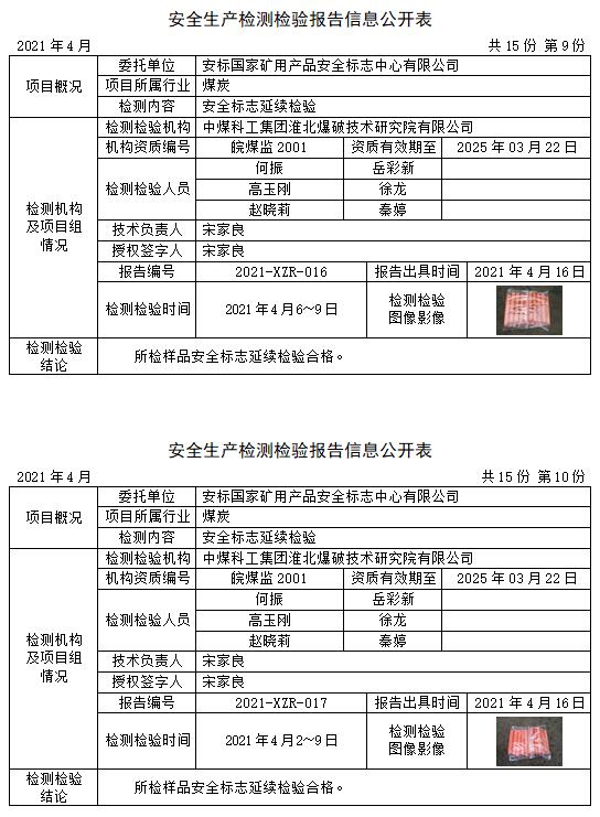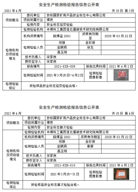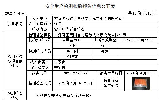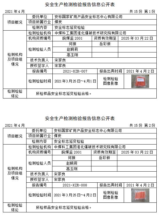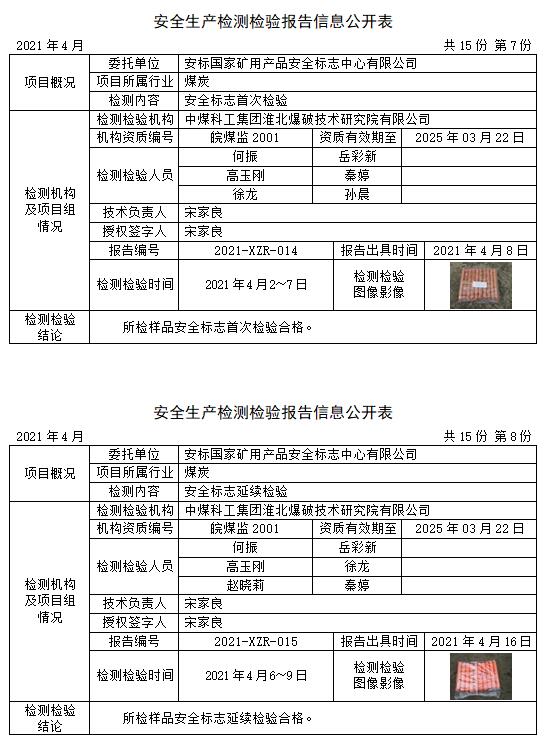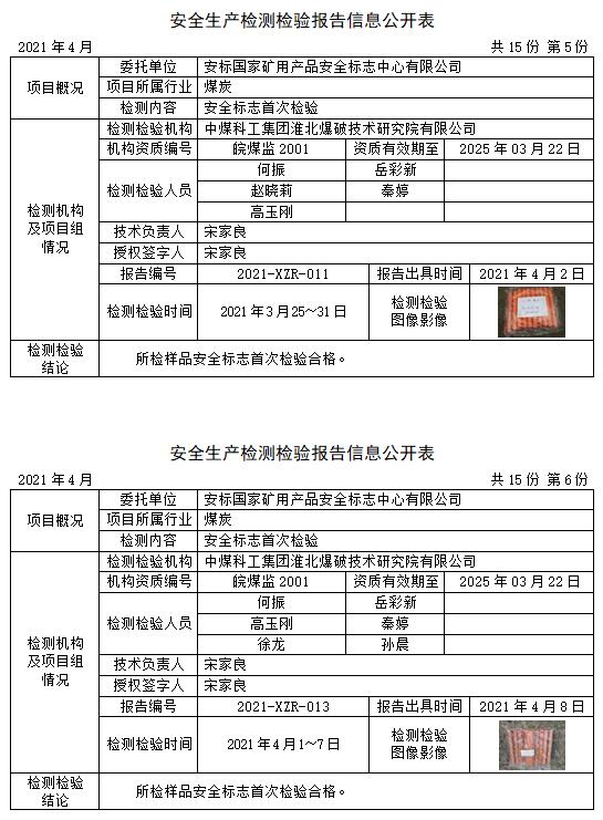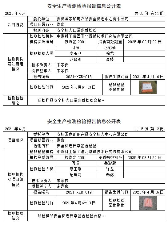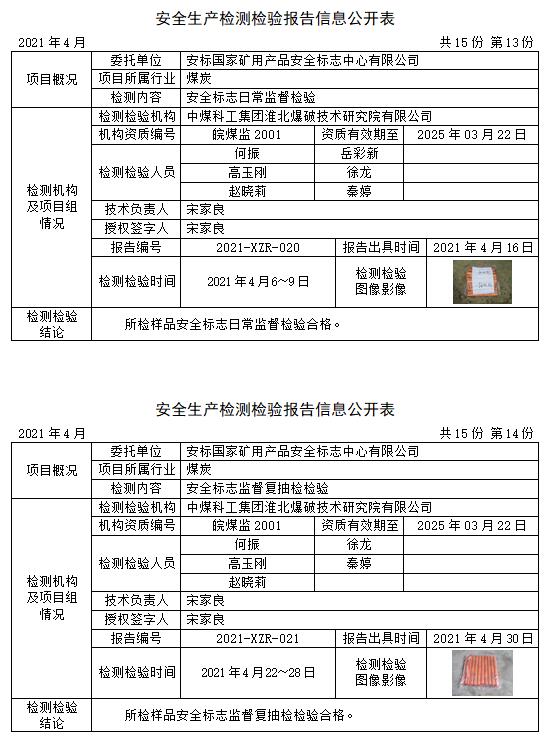 安全生產(chǎn)檢測(cè)檢驗(yàn)報(bào)告信息公開(kāi)表(2021年4月)