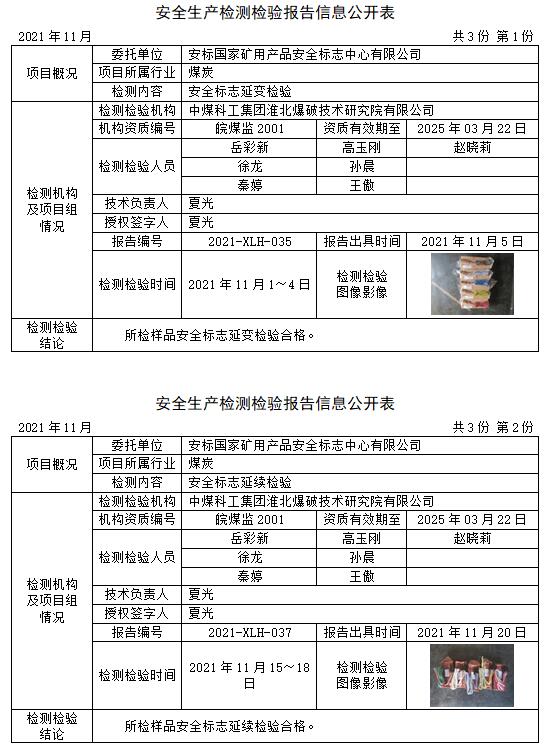 安全生產(chǎn)檢測檢驗(yàn)報(bào)告信息公開表(2021年11月)