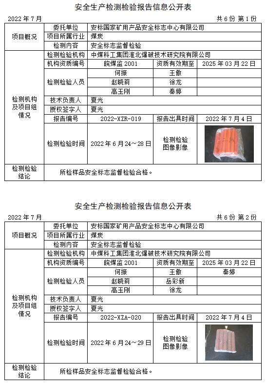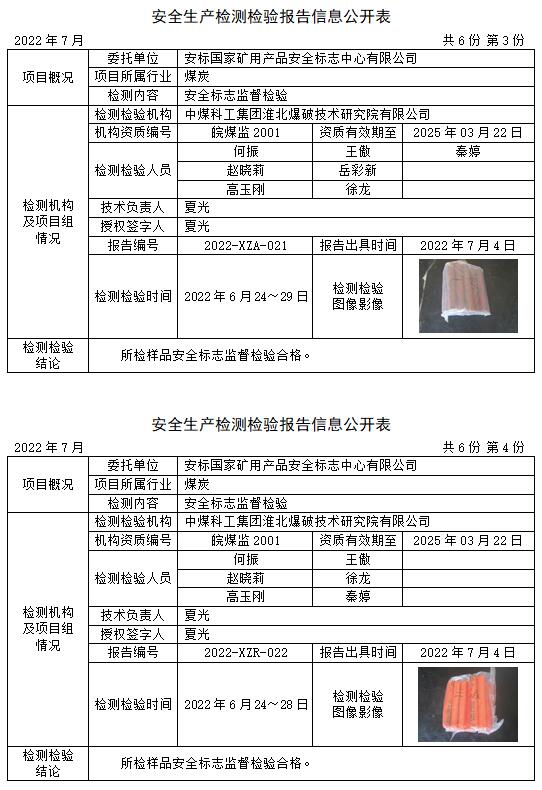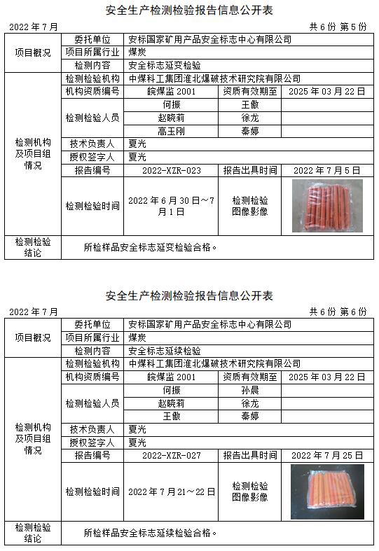 安全生產(chǎn)檢測檢驗報告信息公開表(2022年7月)