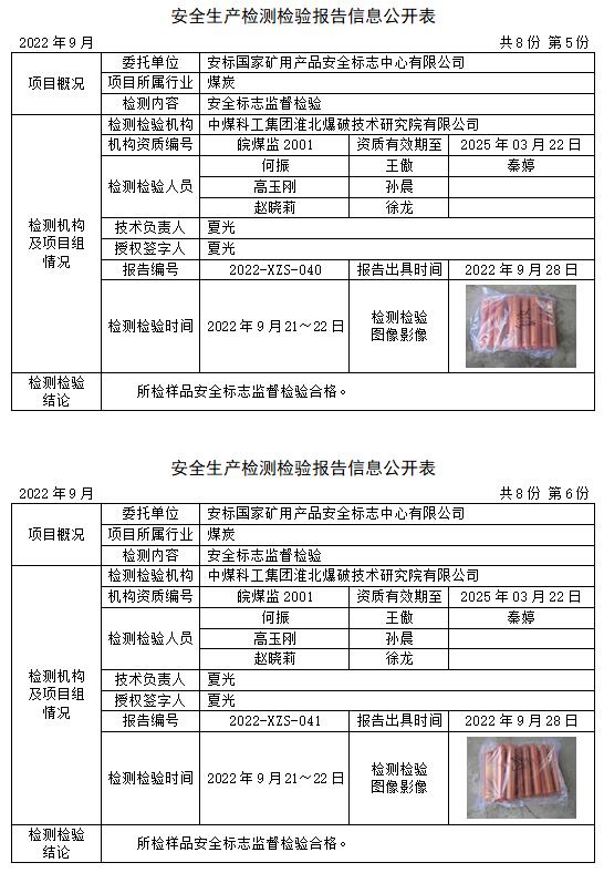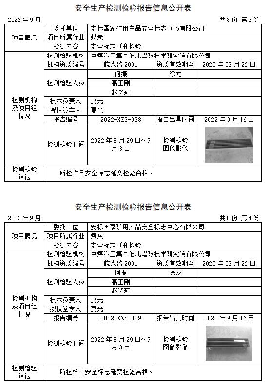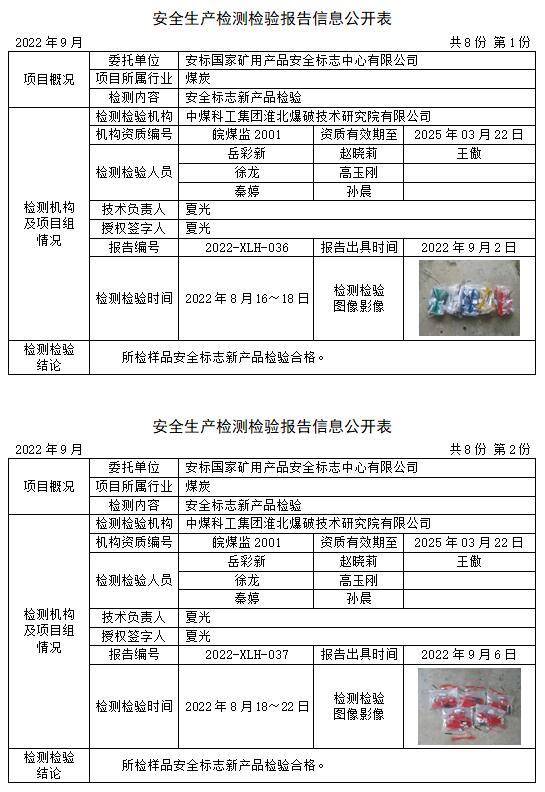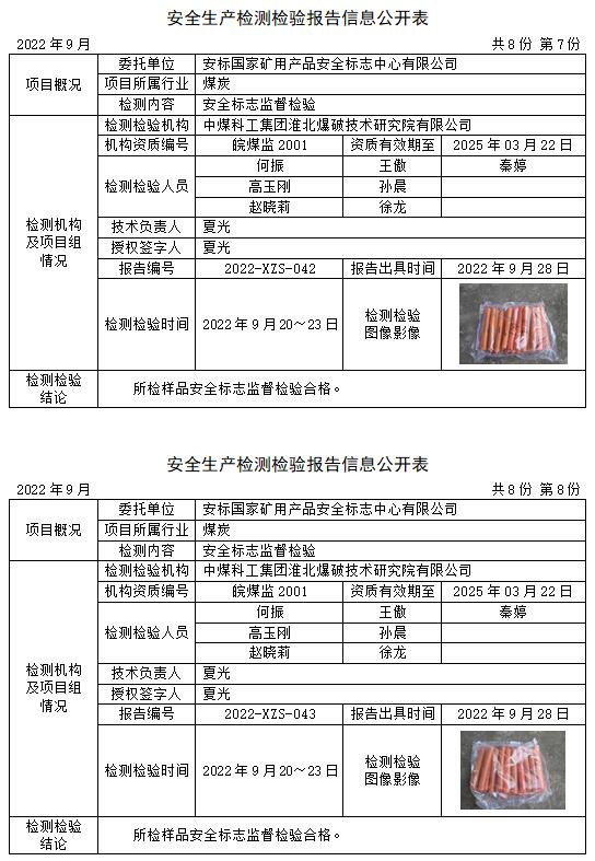 安全生產(chǎn)檢測檢驗報告信息公開表(2022年9月)