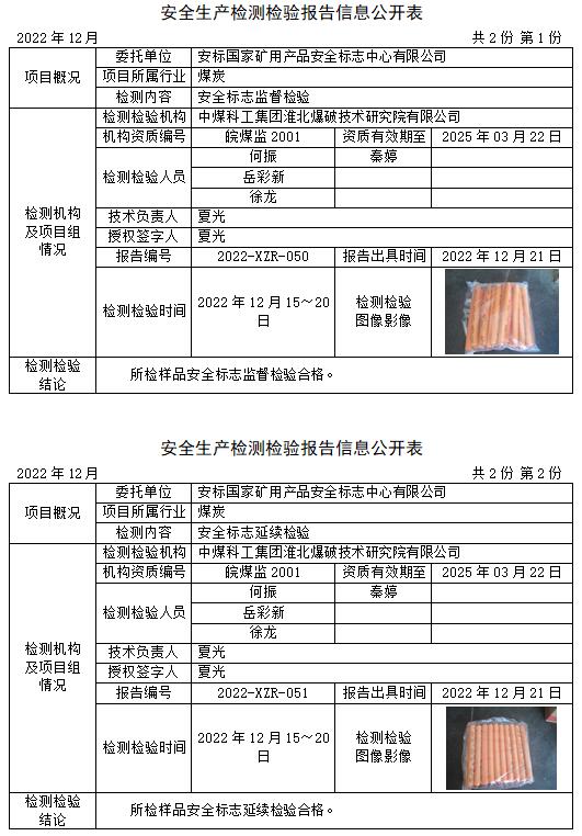 安全生產(chǎn)檢測檢驗報告信息公開表(2022年12月)
