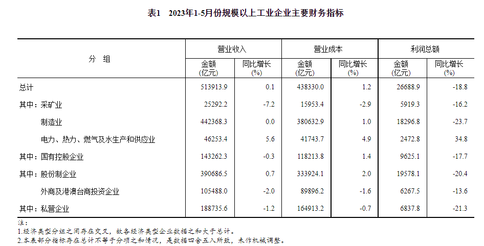 2023年1—5月份全國(guó)規(guī)模以上工業(yè)企業(yè)利潤(rùn)下降18.8%