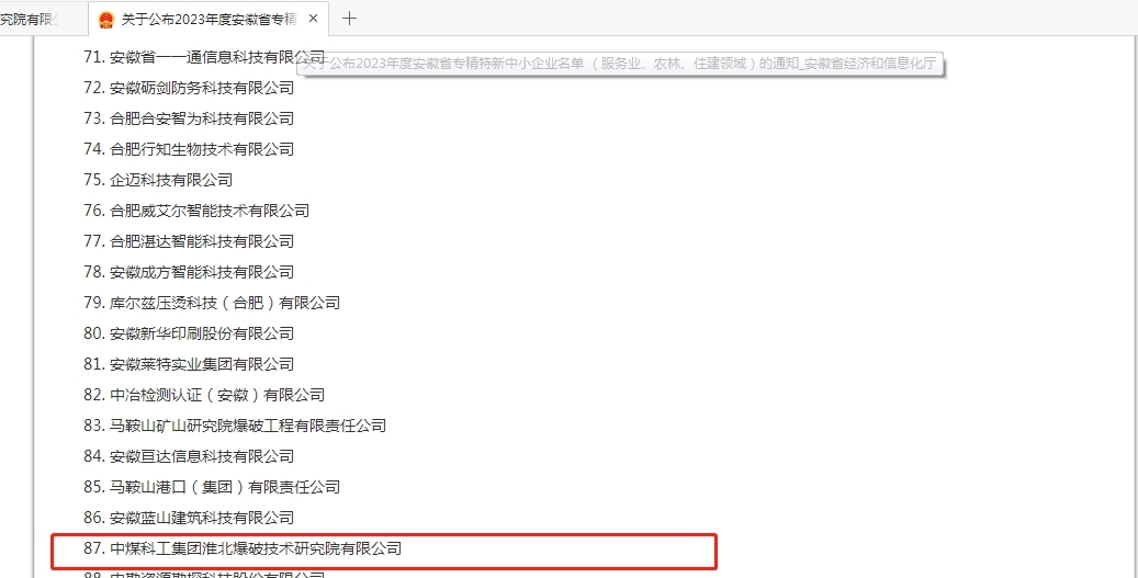 近日,在安徽省經(jīng)濟(jì)和信息化廳網(wǎng)站公布的2023年安徽省專精特新中小企業(yè)名單中,爆破分院成功入選。根據(jù)《安徽省專精特新中小企業(yè)倍增行動(dòng)方案》(皖政辦〔2022〕2號(hào))和2023年省政府重點(diǎn)工作安排,本次爆破分院須同時(shí)申報(bào)2023年省級(jí)專精特新中小企業(yè)認(rèn)定和創(chuàng)新型中小企業(yè)評(píng)價(jià),時(shí)間緊,任務(wù)重,經(jīng)過(guò)精心準(zhǔn)備,在多部門協(xié)同努力下,完成了線上資料填報(bào)和線下資料送審,通過(guò)逐級(jí)審核推薦、第三方審核、社會(huì)公示等程序,最終獲評(píng)為安徽省創(chuàng)新型中小企業(yè)和安徽省專精特新中小企業(yè)。