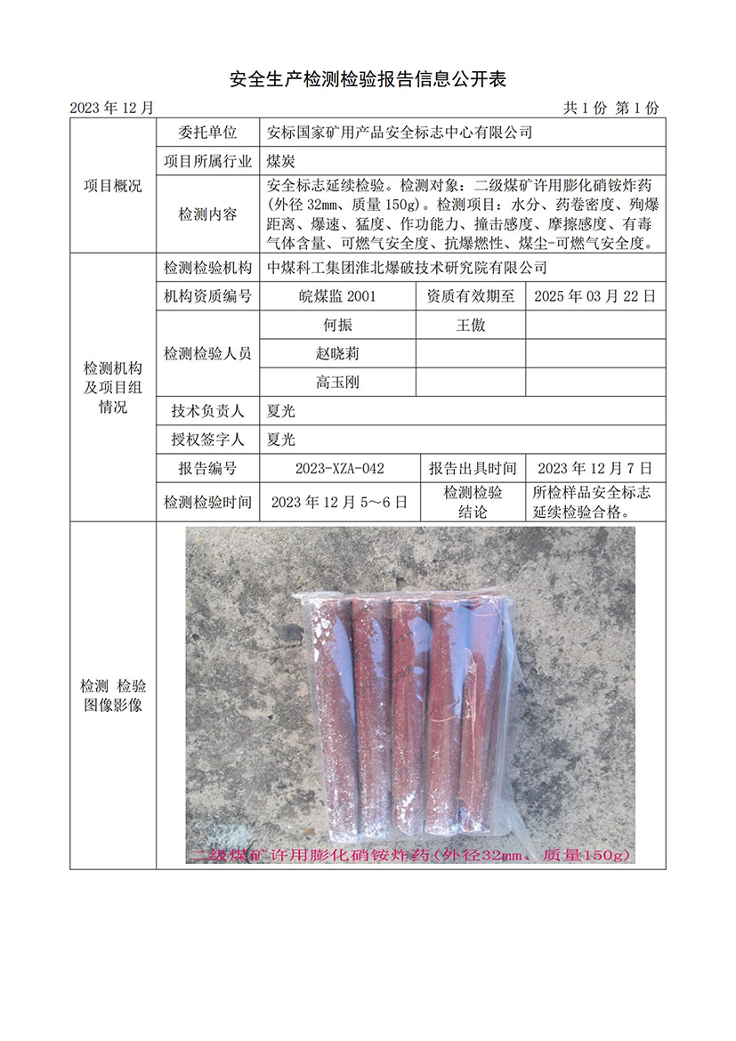 安全生產(chǎn)檢測(cè)檢驗(yàn)報(bào)告信息公開(kāi)表(2023年12月份)