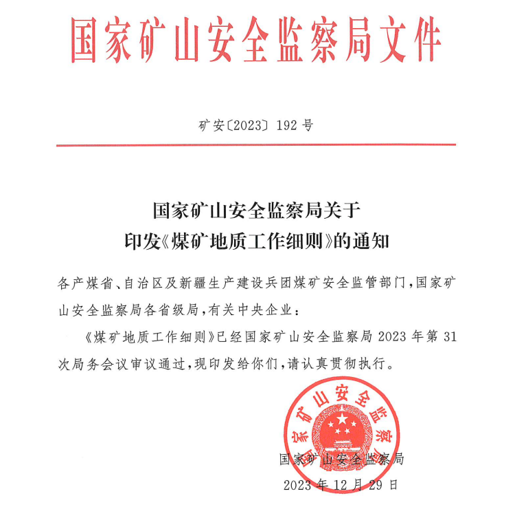 中國煤科西安研究院牽頭修訂的《煤礦地質工作細則》印發(fā)執(zhí)行