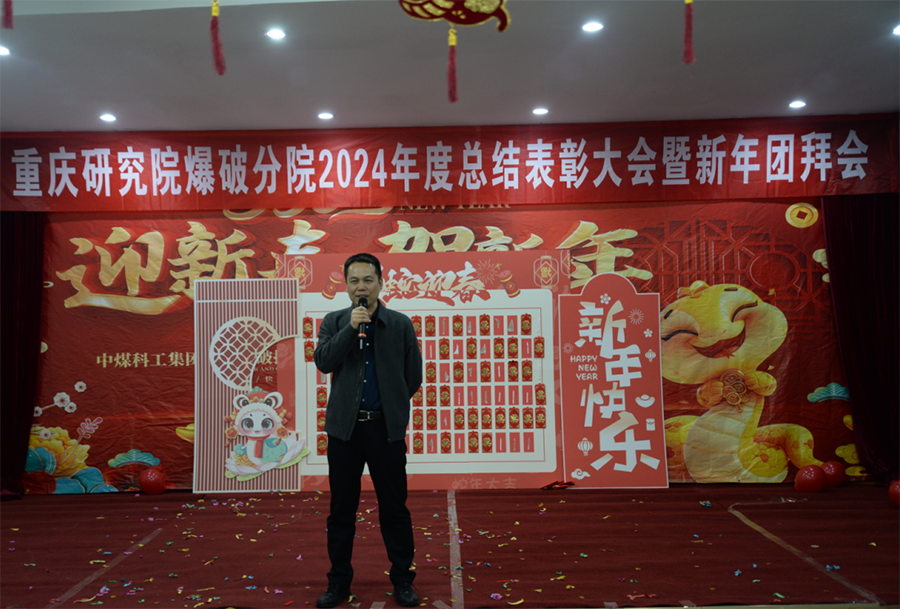 1月17日下午,爆破分院召開2024年度總結(jié)表彰暨新春團拜會。重慶研究院黨委副書記、總經(jīng)理李建國、總工辦主任董鋼鋒、經(jīng)營管理部主任陳東出席會議,與分院全體員工齊聚一堂、恭賀新春。