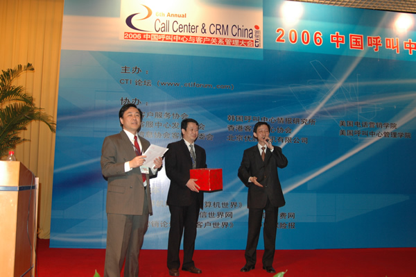 。。當前,呼叫中心與客戶關系管理在中國的發(fā)展可以說進入了一個全新的時期,我們將本次大會的主題定為“2006中國呼叫中心與客戶關系管理大會”,就是為促成各位的交流,促進業(yè)界與海外相關組織的交流,同時展示呼叫中心管理方面的新技術(shù)新產(chǎn)品,從而推進這個技術(shù)在中國的發(fā)展與進步。