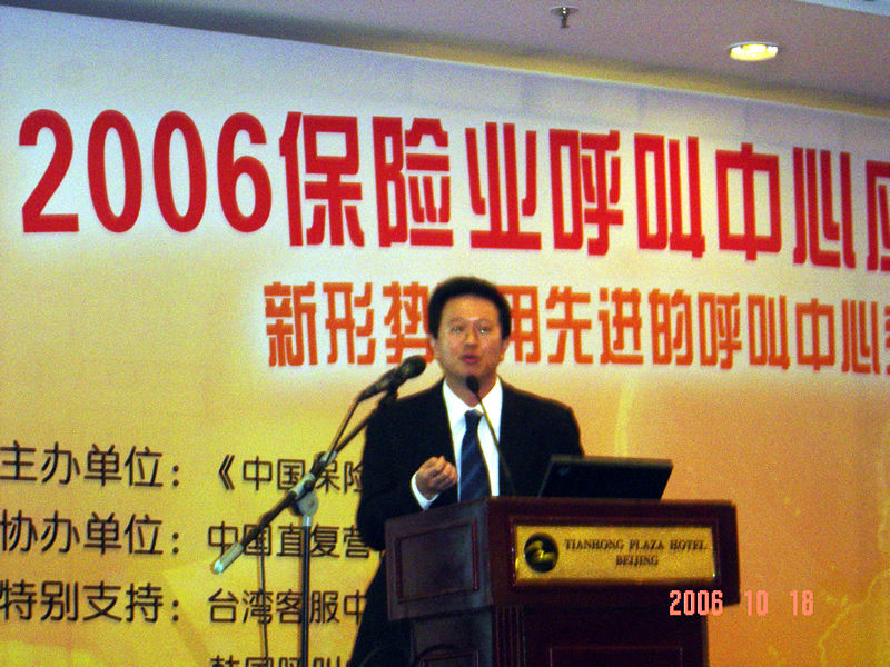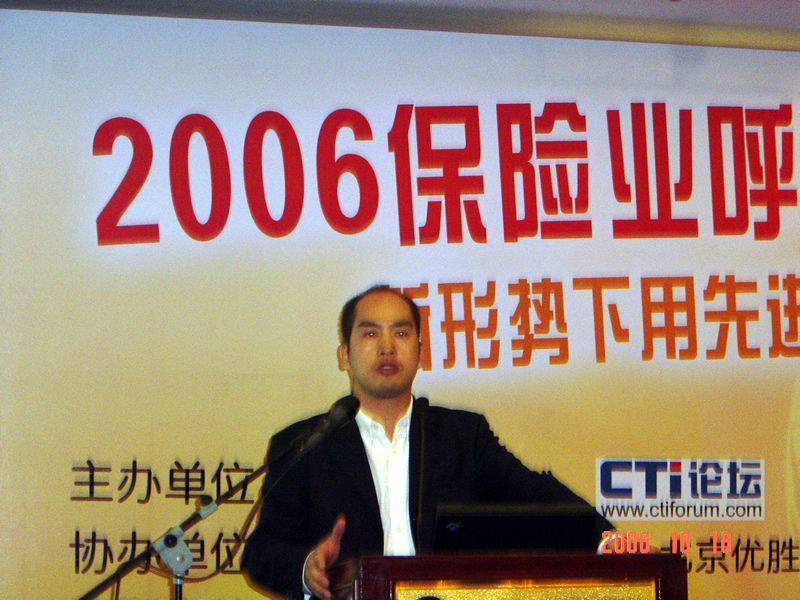。。2006年10月18日,2006保險業(yè)呼叫中心應用暨電話營銷高峰研討會在北京天鴻科園大酒店隆重召開,以下是大會主題演講的相關(guān)圖片報道:
