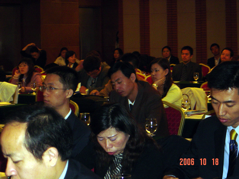 。。2006年10月18日,2006保險(xiǎn)業(yè)呼叫中心應(yīng)用暨電話營(yíng)銷高峰研討會(huì)在北京天鴻科園大酒店隆重召開(kāi),以下是會(huì)議現(xiàn)場(chǎng)的相關(guān)圖片報(bào)道: