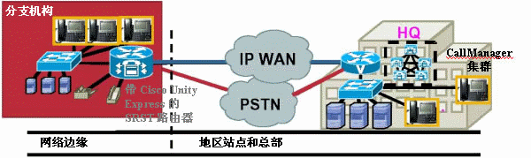 思科集成多業(yè)務(wù)平臺(tái)是企業(yè)分支機(jī)構(gòu)和商業(yè)機(jī)構(gòu)部署帶SRST的IP電話、用于故障恢復(fù)呼叫處理的基礎(chǔ)。在此部署中,語(yǔ)音留言和自動(dòng)接聽服務(wù)可在思科集成多業(yè)務(wù)路由器中通過(guò)Cisco