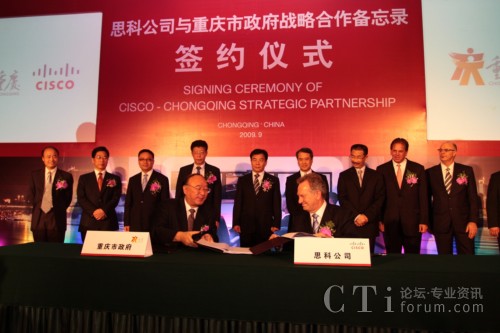 CTI論壇(ctiforum)9月14日消息:2009年9月11日,重慶市人民政府與思科正式簽訂合作備忘錄,雙方將結(jié)為戰(zhàn)略合作伙伴關(guān)系,就通信產(chǎn)品制造、“智能+互聯(lián)城市”試點示范、綠色技術(shù)研發(fā)與創(chuàng)新及風險投資等多方面展開深入合作。此次合作將進一步加快重慶市產(chǎn)業(yè)結(jié)構(gòu)和產(chǎn)品結(jié)構(gòu)調(diào)整,促進內(nèi)陸開放城市建設(shè);加快發(fā)展重慶通信產(chǎn)品產(chǎn)業(yè)集群,把重慶建設(shè)成為西部重要的現(xiàn)代通信產(chǎn)品制造基地;推動以信息產(chǎn)業(yè)為主體的重慶高新技術(shù)產(chǎn)業(yè)發(fā)展以及本土創(chuàng)新和可持續(xù)性能力的提供,更高效便捷地加快本土企業(yè)的國際化進程;整合多方國際資源,以推進重慶在中國率先成為“智能+互聯(lián)城市”,讓市民享受更多的工作和生活便利及實惠。作為思科在華創(chuàng)新及可持續(xù)發(fā)展戰(zhàn)略實施的又一里程碑,此次合作不僅是思科“智能+互聯(lián)城市”計劃在中國與當?shù)卣氖锥群献黜椖浚彩撬伎圃凇皡f(xié)作型創(chuàng)新模式”指導下激勵本土創(chuàng)新的全新實踐。