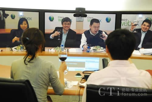 CTI論壇(ctiforum)5月6日消息(記者 楊佳林):中國(guó),北京,2010年4月28日:無(wú)需像德國(guó)國(guó)防部長(zhǎng)古滕貝格那樣駕車行駛3000多公里長(zhǎng)途奔襲,跨越太平洋也一樣享受零距離的午餐。思科中國(guó)首席技術(shù)官梁永健、思科中國(guó)區(qū)副總裁華東區(qū)總經(jīng)理陳葵、思科WebEx研發(fā)及協(xié)作軟件全球副總裁袁征今天通過思科的網(wǎng)絡(luò)會(huì)議技術(shù)和中國(guó)知名博主在北京、上海和舊金山三地共進(jìn)午餐。