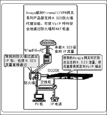 Avaya公司計(jì)劃在近期推出幾款網(wǎng)關(guān)設(shè)備,以支持IP電話(huà)呼叫能安全地通過(guò)防火墻。其中,包括SG5/5X和MG200系列的firewall/VPN設(shè)備。這些新產(chǎn)品的一個(gè)重要特性就是對(duì)H.323 VoIP協(xié)議的支持,這樣可使VoIP安全、方便地部署在遠(yuǎn)程節(jié)點(diǎn)上,而且新的設(shè)備也可與現(xiàn)有的firewall/VPN設(shè)備協(xié)同工作,或用來(lái)建立某個(gè)安全基礎(chǔ)設(shè)施。同時(shí),H.323代理功能可使Avaya的IP電信呼叫置于Internet上而不受某個(gè)公共防火墻的干擾。