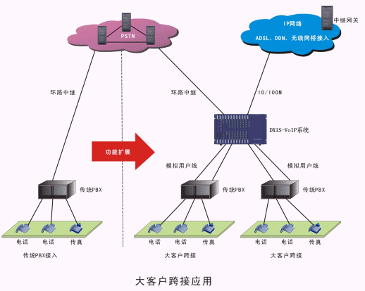 ·DX1S-VoIP系統(tǒng)可在原PBX和IP網(wǎng)間進(jìn)行跨接,不改變用戶使用電話、傳真的習(xí)慣。
