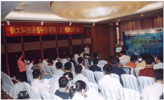 7月23日,新太科技在廣州花園酒店舉行"語音平臺速能II技術(shù)研討會"。新太科技執(zhí)行總裁梁平、副總裁何健明,開發(fā)中心副經(jīng)理張少文,營銷中心國際業(yè)務(wù)部副總經(jīng)理馬任遠(yuǎn)、產(chǎn)品經(jīng)理黃偉,新太科技合作伙伴Intel公司通訊產(chǎn)品業(yè)務(wù)部戰(zhàn)略客戶經(jīng)理林競宇,新太語音平臺速能產(chǎn)品核心代理商--廣州納特威科技公司總經(jīng)理黃淡輝,渠道總代理商--深圳意科特實業(yè)有限公司總經(jīng)理李面換等到會并作主題發(fā)言!吨袊嬎銠C(jī)報》、《計算機(jī)世界》、《SP計算機(jī)產(chǎn)品與流通》、IT168共四家專業(yè)媒體記者到會采訪。