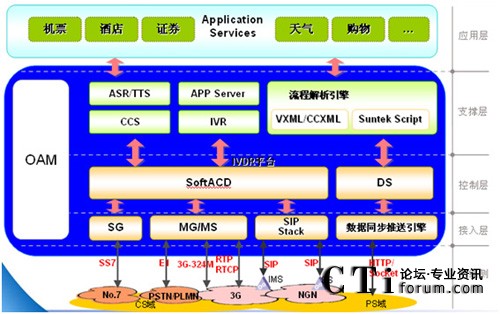 流程解析引擎支持VXML及SUNTEK Script流程語(yǔ)言,通過(guò)SCE集成開發(fā)環(huán)境,可以方便地定制開發(fā)動(dòng)態(tài)語(yǔ)音流程。除實(shí)現(xiàn)IVR功能外,還可以通過(guò)數(shù)據(jù)鏈路同步向用戶的終端推送數(shù)據(jù),并通過(guò)終端軟件的解析后展現(xiàn)在客戶面前。