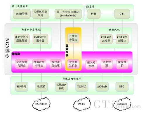 欣方軟交換系統(tǒng)軟件CIN-SS是一個標(biāo)準(zhǔn)的NGN/IMS下多媒體多業(yè)務(wù)軟交換系統(tǒng),集語言、數(shù)據(jù)、視頻業(yè)務(wù)的控制與接入于一體,通過控制與業(yè)務(wù)分離、控制與承載分離技術(shù),提供開放的、分層的、多媒體融合通信網(wǎng)絡(luò)體系。欣方軟交換系統(tǒng)軟件CIN-SS采用標(biāo)準(zhǔn)的SIP協(xié)議RFC3261以及各種擴展,支持與貝爾、華為、中興、愛立信、諾基亞等國內(nèi)外主要電信級軟交換產(chǎn)品的進行互聯(lián)互通(經(jīng)過運營商的嚴(yán)格測試和現(xiàn)網(wǎng)運行系統(tǒng)驗證)。CIN-SS提供基本的呼叫接入和會話控制功能,并為第三方SIP應(yīng)用AS和軟排隊機、呼叫中心CTI等提供業(yè)務(wù)觸發(fā)和接入能力,包含SIP注冊服務(wù)器、SIP代理服務(wù)器,支持分布組網(wǎng)及與其他SIP系統(tǒng)互聯(lián)互通。CIN-SS是一個獨立的實體,可用于構(gòu)建一個完整的軟交換設(shè)備,并支持虛擬的多租戶運營網(wǎng)絡(luò)。