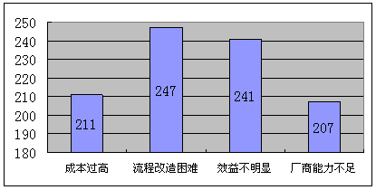 b)流程改造困難,對這個(gè)困難的擔(dān)心的企業(yè)數(shù)量最多,考慮到國內(nèi)企業(yè)的現(xiàn)實(shí)管理問題,流程改造必然與現(xiàn)實(shí)的利益發(fā)生矛盾,引起的阻力不可輕視。