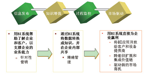 而在當前企業(yè)轉(zhuǎn)型的關(guān)鍵階段,我們更要強調(diào),通過BI系統(tǒng)對數(shù)據(jù)的分析挖掘形成企業(yè)內(nèi)部能夠共享的知識,真正運用到企業(yè)運營的各個環(huán)節(jié)中去,支撐精細化營銷和精確化管理等。