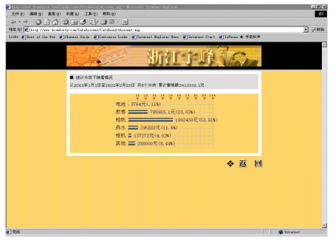 宇峰公司(www.fromforty.com)是柯達(dá)(中國)有限公司在中國華東地區(qū)的總代理,負(fù)責(zé)管理華東地區(qū)近600個分銷商和連鎖店。公司非常重視信息化建設(shè),添設(shè)了大量的計(jì)算機(jī),建立起初步的管理系統(tǒng)。但是直到2000年還是依靠E-mail傳遞大量的Excel表格獲取需要的產(chǎn)品銷售和庫存的信息。這些表格對各級分銷商查詢和統(tǒng)計(jì)數(shù)據(jù)來說非常麻煩,因?yàn)槊恐芤幚韼装賯訂購單。整個處理過程非常緩慢,并且成本很高,也容易造成各種的數(shù)據(jù)錯誤。而公司內(nèi)部對業(yè)務(wù)人員銷售情況的統(tǒng)計(jì),也頗為麻煩,因?yàn)橄录壏咒N商上報上來的數(shù)據(jù)準(zhǔn)確性差,并且不夠及時。處理這些表格對宇峰公司和分銷商以及連鎖店而言都是效率很低的,并且常常令人茫然不知所措。
