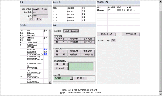 。。利用內嵌的OCX控件,星際網(wǎng)絡已經(jīng)完全實現(xiàn)了在web頁面調用呼叫中心的功能,其主界面如下: