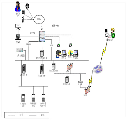 2 ) CTI(計算機電話集成)服務(wù)器:通過該平臺實現(xiàn)計算機網(wǎng)絡(luò)與電話系統(tǒng)的無縫結(jié)合,可通過計算機應(yīng)用系統(tǒng)對話務(wù)處理進行操作;
