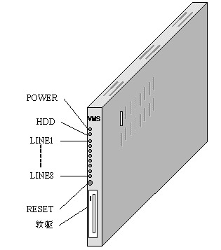 一塊嵌入式語(yǔ)音信箱板(集成了一臺(tái)電腦、語(yǔ)音卡和用戶板三者)。下面為其外形示意圖: