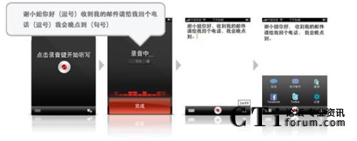聲龍(Dragon)系列應用軟件是基于Nuance著名的Dragon NaturallySpeaking® 語音軟件開發(fā)的應用,借助語音識別技術,用戶在輕松自然說話時,就可將語音即時轉(zhuǎn)換成要發(fā)送的短信文本或電子郵件,更新社交網(wǎng)絡狀態(tài)和進行網(wǎng)絡搜索。事實證明,語音識別的速度比使用鍵盤輸入文字快上五倍以上。