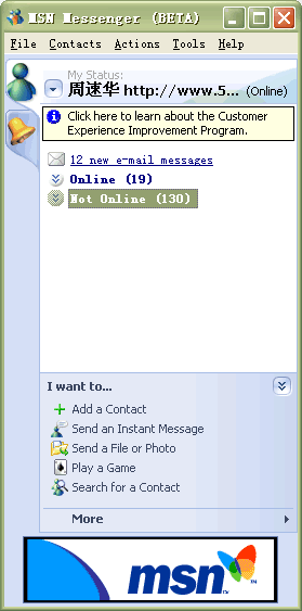 5月26日,微軟最新即時通訊軟件MSN Messenger的最新版本MSN Messenger Beta 6.0.0250被提前遭遇外泄,使得大家提前領(lǐng)略到了微軟最新的即時通訊軟件風采。這也是微軟.net計劃中的一個重要組成部分,也讓我們看到了一些微軟“格林威治(Greenwich)”的影子!案窳滞(Greenwich)”――是微軟基于.net戰(zhàn)略的能夠?qū)崟r進行通信等的服務器軟件的開發(fā)代號。由于未對外正式發(fā)布,此次公開的是MSN