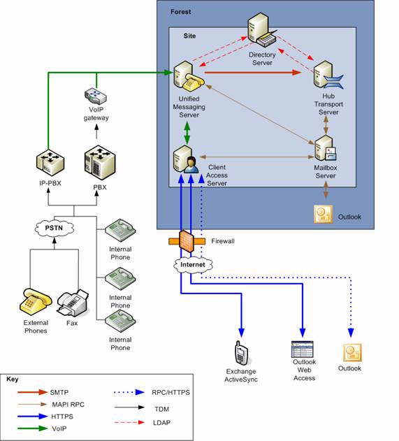 PBX 和語(yǔ)音郵件硬件類型,以及該站點(diǎn)在總體 Exchange Server 2007 部署計(jì)劃中的位置。