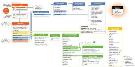 允許用戶通過(guò)電話處理他們的消息和日歷數(shù)據(jù)(包括收聽(tīng)、轉(zhuǎn)發(fā)和回復(fù)電子郵件,以及發(fā)出、更新或響應(yīng)會(huì)議請(qǐng)求)。用戶可以標(biāo)記消息以便跟蹤、跳到下一封未讀郵件、隱藏或刪除對(duì)話,甚至查找來(lái)自特定用戶的消息,這一切全都使用語(yǔ)音導(dǎo)航或標(biāo)準(zhǔn)按鍵式鍵盤來(lái)完成。