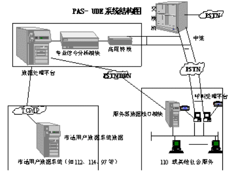 為了滿足各類社會(huì)應(yīng)急與服務(wù)呼叫系統(tǒng)對(duì)電話用戶資料的需要,同時(shí)又解決電信部門(mén)對(duì)用戶資料數(shù)據(jù)庫(kù)的保密和安全要求,我公司成功開(kāi)發(fā)了PAS-UDE(User Data Extract)電話信息回送系統(tǒng),并成為110聯(lián)網(wǎng)接口設(shè)備開(kāi)發(fā)生產(chǎn)入網(wǎng)廠商。