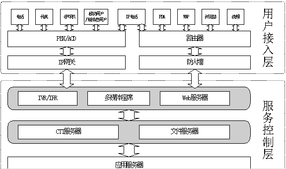即多媒體客服中心的接入端,包括IVR流程、人工坐席等,它是用戶進(jìn)入多媒體客服中心客服系統(tǒng)的入口,它將直接面對用戶并收集各種信息。支持電話、傳真、電子郵件、WEB訪問、WAP、PDA、IP電話、網(wǎng)絡(luò)電話、視頻電話等多種方式接入。