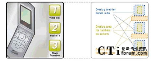 互作用提出了更進(jìn)一步的挑戰(zhàn)。能夠使用戶訪問(wèn)多個(gè) TV 頻道以及獲得其他服務(wù)的視頻門(mén)戶,是一個(gè)很好的研究實(shí)例。視 頻門(mén)戶顯示了基于每個(gè)用戶活動(dòng)、訪問(wèn)權(quán)限、服務(wù)描述等的服務(wù)菜單。一般來(lái)說(shuō),菜單是有限列表,用戶通過(guò)在手持終端 按下相應(yīng)的鍵來(lái)進(jìn)行選擇 (圖2.通過(guò)示意圖說(shuō)明了動(dòng)態(tài)菜單的映射方法)。為了創(chuàng)建菜單,應(yīng)用程序控制了基礎(chǔ)架構(gòu),而該 基礎(chǔ)架構(gòu)動(dòng)態(tài)地生成了有限列表,并在當(dāng)前的視頻流頂端顯示為一個(gè)靜態(tài)覆蓋圖。相同技術(shù)可用于顯示基于用戶活動(dòng)或位 置進(jìn)行品牌和廣告宣傳的 logo 或文本。