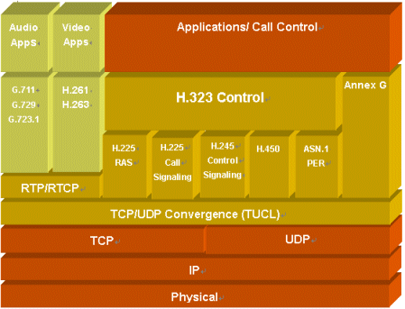 。。H.323是ITU-T的標(biāo)準(zhǔn),定義了在分組網(wǎng)(LAN, WAN, Internet)上進(jìn)行多媒體通信所需的組件、協(xié)議和規(guī)程。