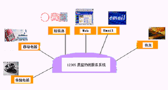 人民群眾利用電話、傳真、手機(jī)、電子郵件、因特網(wǎng)、短消息等撥打國(guó)家質(zhì)量技術(shù)監(jiān)督局規(guī)定的統(tǒng)一特服號(hào)碼(12365)進(jìn)入12365質(zhì)監(jiān)熱線服務(wù)系統(tǒng),本系統(tǒng)依托質(zhì)量技術(shù)監(jiān)督局各類業(yè)務(wù)技術(shù)支持系統(tǒng)和網(wǎng)絡(luò)系統(tǒng),通過(guò)人工受理或自動(dòng)語(yǔ)音服務(wù)等方式全天24小時(shí)不間斷地為客戶提供各種服務(wù)。