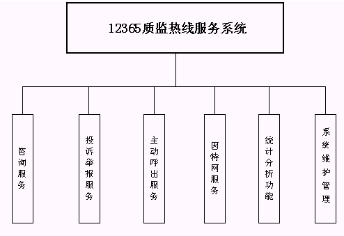 CENTER) 技術(shù),建立12365質(zhì)監(jiān)熱線服務(wù)系統(tǒng)。它可以作為連接大眾和產(chǎn)品質(zhì)量服務(wù)的橋梁,質(zhì)量技術(shù)監(jiān)督局管理窗口的延伸,質(zhì)量技術(shù)監(jiān)督局對(duì)大眾進(jìn)行電子化服務(wù)的門戶;為打擊假冒偽劣商品,保護(hù)名優(yōu)產(chǎn)品發(fā)揮橋梁紐帶作用。