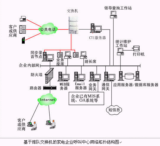 對(duì)于大中型的家電企業(yè)呼叫中心系統(tǒng),可選用排隊(duì)交換機(jī)作為語音接入設(shè)備,保障系統(tǒng)的高可靠性和穩(wěn)定性;