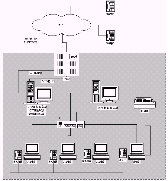 該呼叫中心平臺網(wǎng)絡拓撲結構如下: