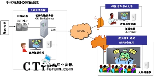 CTI論壇(ctiforum)2月22日消息(記者 張塵):近日沖電氣工業(yè)株式會社(OKI)子公司沖網(wǎng)絡(luò)株式會社和日本九州大學(xué)(校長:有川節(jié)夫,地址:日本福岡縣福岡市)一起成功完成向國外轉(zhuǎn)播HD(注1)手術(shù)視頻的測試。此項測試是2月8日至10日在澳大利亞悉尼召開的“第29屆Asia-Pacific