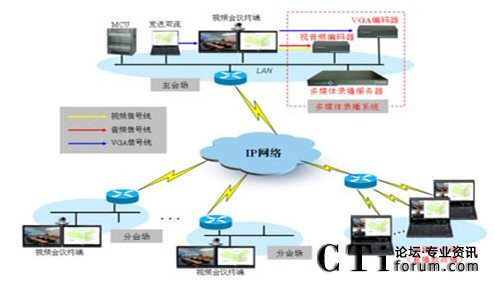 圖:實(shí)現(xiàn)本地會(huì)場(chǎng)、遠(yuǎn)端會(huì)場(chǎng)及雙流內(nèi)容的全面錄制、直播、點(diǎn)播