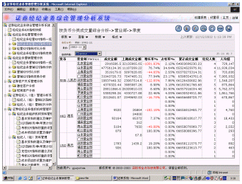 深圳市金點科技有限公司率先采用國際先進(jìn)的商務(wù)智能(BI)和數(shù)據(jù)挖掘技術(shù)、借鑒國外證券行業(yè)成熟的管理經(jīng)驗,結(jié)合國內(nèi)證券行業(yè)的特點,推出"證券經(jīng)紀(jì)業(yè)務(wù)綜合管理分析系統(tǒng)",該系統(tǒng)是證券經(jīng)紀(jì)業(yè)務(wù)的集中管理和決策分析系統(tǒng),具有很強的靈活分析功能。該系統(tǒng)主要是對證券經(jīng)紀(jì)業(yè)務(wù)經(jīng)營決策、市場營銷和客戶服務(wù)進(jìn)行管理和分析,為證券經(jīng)紀(jì)業(yè)務(wù)管理部門加強對營業(yè)機構(gòu)管理、制定營銷戰(zhàn)略、加強對證券經(jīng)紀(jì)隊伍的建設(shè)和提高客戶服務(wù)質(zhì)量提供科學(xué)的決策依據(jù)。