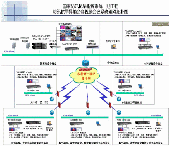 他們調(diào)查了當(dāng)時(shí)水利部及下屬機(jī)構(gòu)的網(wǎng)絡(luò)現(xiàn)狀:即將安裝的國(guó)家防汛抗旱指揮異地會(huì)商視頻會(huì)議系統(tǒng)會(huì)運(yùn)行在"國(guó)家防汛抗旱指揮系統(tǒng)"一期工程骨干網(wǎng)上,水利部網(wǎng)絡(luò)中心到7